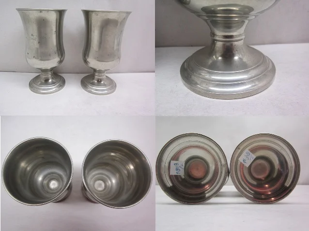 i am pleased to offer this outstanding unmarked pair of 6 1/8" church chalices, positively attributable to william calder. calder made pewter in providence, rhode island from 1817 to 1856. these well designed pieces are well finished works of art. they are in excellent condition.